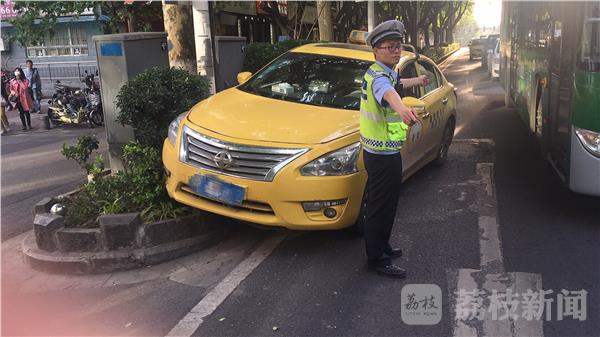 5月10日晚,南京汉中路螺丝转弯口一出租车不慎“骑”到了花坛上,随着下班高峰的到来,汉中路西向东方向一度出现交通拥堵现象。交警二大队四中队民警刘陆鹏在接警后第一时间赶到现场,一方面让司机在车后方摆起三脚架,以防二次事故发生,另一方面在现场指挥疏导交通。经了解,原来出租车司机为了多跑车挣钱,没有定期进行车辆保养,认为只要车子没有大问题就能接着开,没想到刚刚在路过斑马线时突然刹车失灵。为避免对过往行人更大伤害,司机只能突然猛打方向盘,这才把出租车开到了花坛上,所幸自己和路人都没有受到伤害。