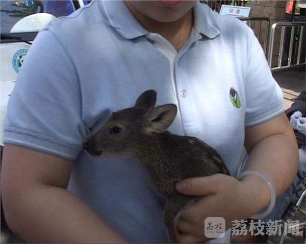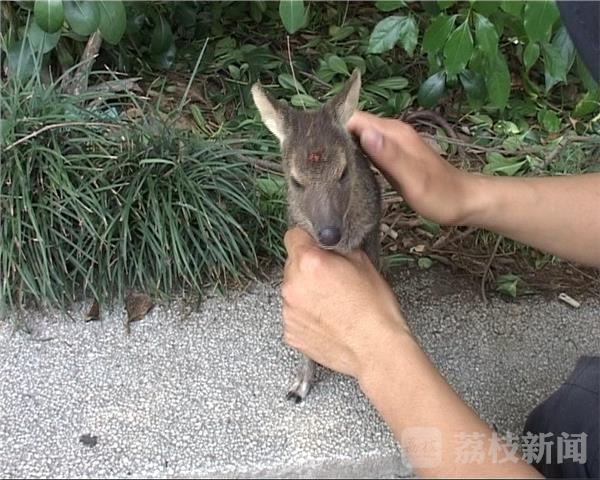 昨天(5月10日)下午2点多钟,在南京市中山陵中山植物园附近,一位市民发现了一只国家级保护动物獐子,当时这只獐子已经受伤。玄武公安下马坊警务站的特勤人员说,这只小獐子是一位市民在中山陵中山植物园附近的草丛中发现的,头部有伤,还在流血,接警后,他们赶到现场,随即将獐子送到了红山动物园。