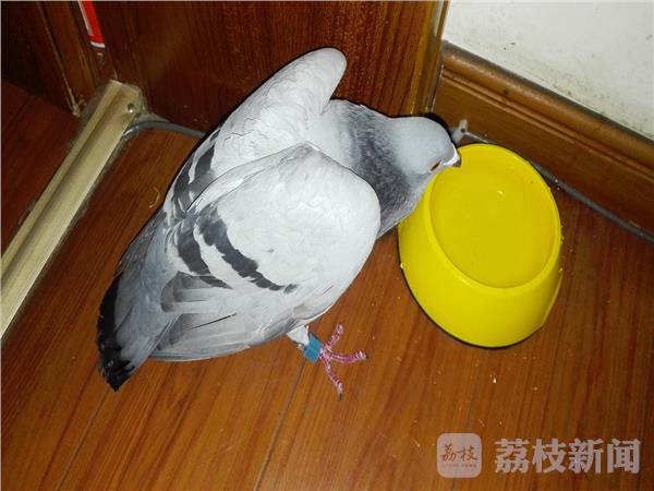 5月11日晚上10点左右,一只信鸽飞到了鼓楼区金川新寓一处3楼的窗台上。以为是夜晚迷路了,3楼的房主苏女士没有在意。