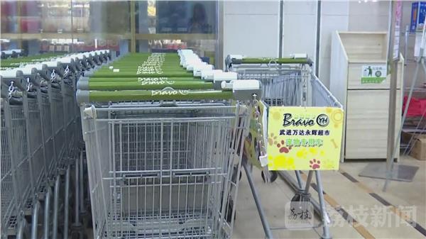 随着天气逐渐转热,不少市民喜欢吃过晚饭后散散步、遛个狗,再一起去逛个超市,不过,一般公共场所都会拒绝宠物进入,最近有常州市民向我们反映,说是在武进万达的永辉超市里,特地给宠物安排了两辆专用购物车。