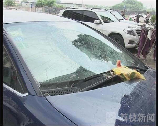 郭女士在市区万达一期的临街门面房开了一家理发店,平时车子就停在店门口。去年7月,正在店里做事的她突然听到屋外传来“嘭”的一声巨响。出门一看才发现,自己的爱车已经被一包从天而降的垃圾给“破了相”。