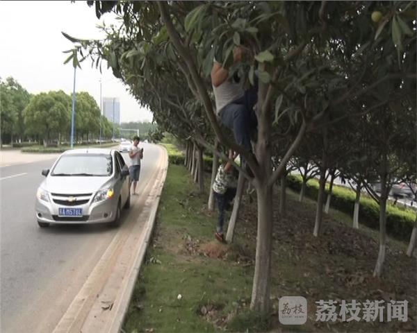 昨天(5月14日)下午4点多,在南京江宁区龙眠大道路中间的绿化岛上,有人采摘起了树上的枇杷果,令人大跌眼镜的是,他们中有不少人还是全家出动,甚至带着孩子采摘。让人不禁产生疑问:他们究竟是有所得,还是有所失呢?在这处绿化景观中,好几位成年人在低处采摘着枇杷果实,够不着的,就干脆爬上树,一边摇树,一边敲打,把树木弄得遍体鳞伤。甚至还把孩子抱上树摘果子的。更让人担心的是,有人还是开着轿车前来采摘的,车辆被随意停靠在快车道边上。为了采摘完枇杷,他们全然不顾身边呼啸而过的车辆,随意横穿快车道,很是危险。面对此情此景,环卫工人和路过的市民直摇头。