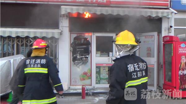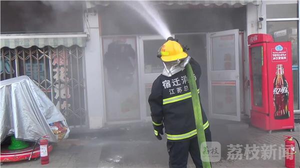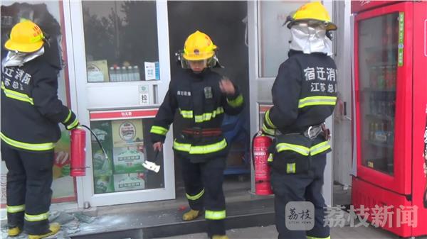 5月17日早上5点,宿豫区消防大队和宿豫区高新派出所在荷塘小区门口联合对一辆起火面包车灭火,在救援结束准备返回时,宿豫区高新派出所民警江毅在经过小区门口一个超市时,发现从紧闭的店门上方冒出缕缕白烟,细心的江毅随后到门口查看,并闻到冒出的白烟有电线的焦糊味,随即便大声呼喊消防人员前来检查。随后突然从屋内冒出火来,夹杂着爆炸声,消防队员观察后,判断是电路造成的起火,随后大声呼喊室内人员赶快撤离。
