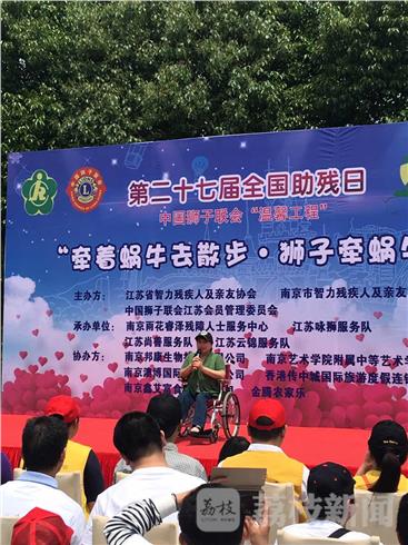 今天是全国第二十七届助残日,在江苏省残联、南京市残联、雨花区残联、西善桥街道等各级领导大力支持下,今早我们约了一群开心的小蜗牛,与狮子会及社会志愿者一道牵着他们专程来到了高淳,举行牵着蜗牛去散步.狮子牵蜗牛活动!