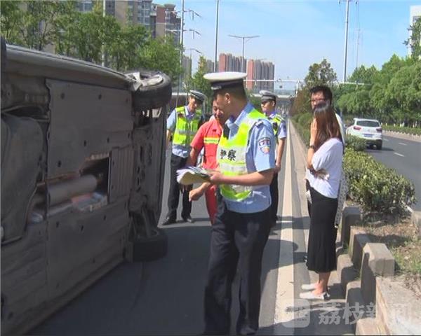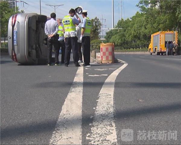 今天(5月24日)上午9点钟左右,在幕府西路加油站附近发生一起交通事故,一辆斯柯达轿车在分流线附近撞上绿岛侧翻,这辆轿车是由东向西方向行驶。