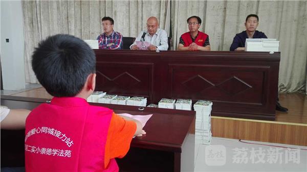 孙勇敢告诉记者,他作为一个企业的负责人,愿意做一名法治志愿者,今天捐赠这些普法书籍,就是想让儿童能学习法律、遵守法律,做守法的小公民,为法治建湖、平安建湖建设作出一点贡献。在捐赠仪式上,爱心同城接力站的爱心叔叔和阿姨们向小朋友们发放了《全国青少年普法教育读本》。