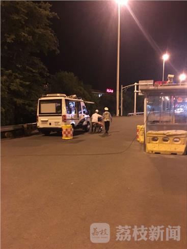 5月24日晚上9点多,南京高速四大队民警驾驶警车在道路上巡逻时,发现一名中年男子推着电动车在高速上行走。此时,天色已暗,路面上的车速非常快,情形十分危险。为安全考虑,民警立即将其护送至附近安全区域。