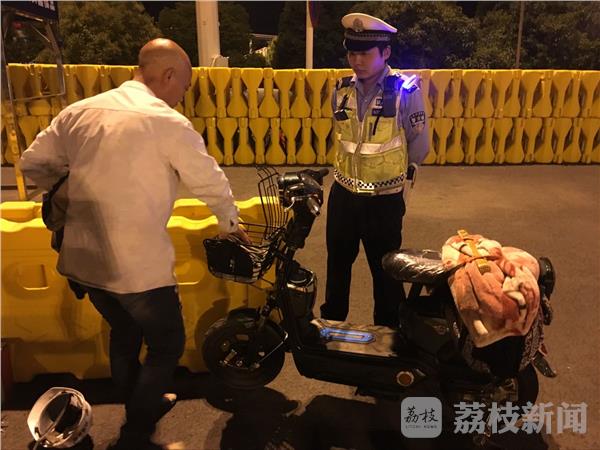 经了解,该男子姓蒋,在南京工作,从事建筑行业工作,近期休息一段时间,便准备骑电动车从南京到徐州,想体验一段自由的旅行。但因不熟悉交通法规,便跟随导航骑电动车上高速。不料刚上高速,电动车胎就爆了。当民警说电动车电量无法持续骑行到徐州时,蒋某说自己打算骑一段就找地方充电,这样总能到达目的地。当晚,民警对蒋某批评教育后,将其安全送下高速。蒋某也意识到电动车上高速的危险性,不停地感谢民警的帮助和教育。