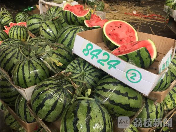 南京众彩物流中心果品市场经营户张胜利告诉记者:“山东瓜去年平均价格在一块二三,现在价格批发价一块七八,到市场零售两块五左右,另外上海的8424西瓜,每年收购价在一块五左右,现在收购价在两块,批发价在两块五左右,零售的话要三块五左右,比去年贵40%以上。因为今年种植量下降,价格处于高位运行。”