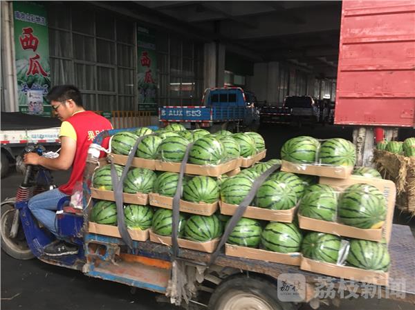 气温较高,阳光充足,使得今年西瓜提前上市。目前,南京众彩物流中心果品市场,西瓜每天的成交量已经达到了1000吨。与此同时,今年西瓜价格和销量齐飞,瓜价比去年高出了近五成。