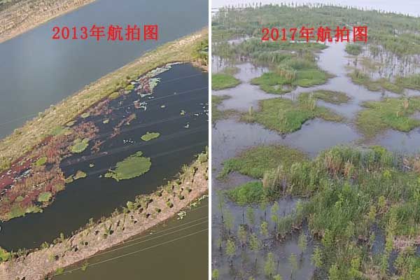 根据2013航拍和2017航拍两相对比,就看出安树青教授对南湖湿地做出的整体规划和改变。