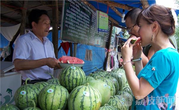 乐口蜜基地的负责人唐金荣告诉记者,今年西瓜卖的俏: “产量可以,像我们第一茬亩产5000斤左右。今年天气比较热,价格总体去去年高,像我们去年卖3块五,今年零售4块,还是供不应求。” 在淮安市区多家农贸果蔬市场,记者了解到,由于今年的气温较高,阳光充足,西瓜提前上市,上海8424、江苏东台瓜、淮安南马厂瓜、特小凤瓜、早春红玉瓜、金星瓜等多个品种的西瓜已经现身,但是价格相对偏高。淮安丰登路农贸果蔬市场负责人李倩:“东台瓜皮薄,口感挺好的,水多,营养价值高;特小凤瓜皮薄只有2毫米,黄瓜瓤那种,有一种淡淡的清香味;南马厂瓜卖的是最好的,因为是本地瓜嘛,我们淮安人比较认;金星瓜比较便宜,买的人也不是很多,因为口感不是太好。东台瓜跟特小凤瓜和南马厂瓜都是3块钱一斤,金星瓜比较便宜2块5毛钱一斤。”