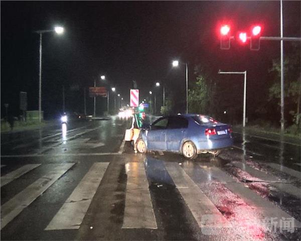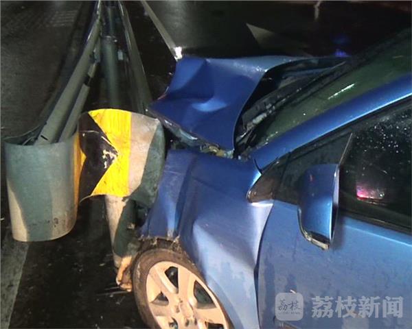记者闻讯赶到现场时,车内人员已经被送往医院治疗,现场轿车车头死死卡在公路护栏,轿车一侧损坏严重,轿车后座多处有斑斑血迹,现场有市民向记者反映,车祸原因可能是因为远光灯刺眼,驾驶员没有看清斑马线外路中的护栏。