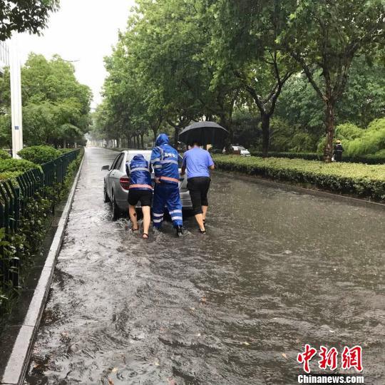 大雨当前,南京当地城管奋战在抢险一线,从清晨就开始排水救灾。城管供图