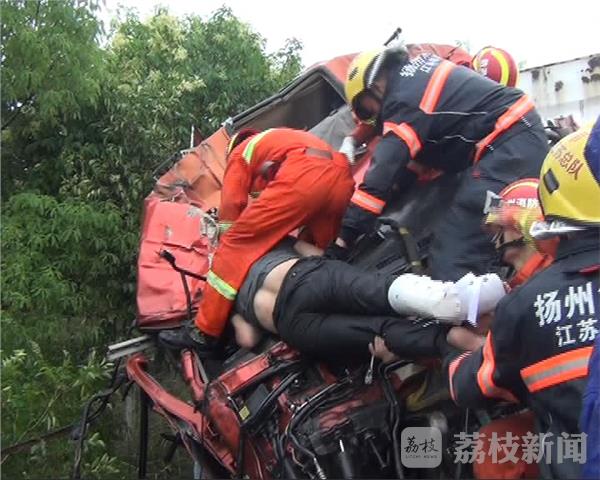 据现场村民介绍,当时他们在家中突然听到撞击声,冒雨过来查看,救出一人,其余三人被卡比较严重,没法施救,只好打电话报警求助。消防队员爬上槽罐车车头,用扩张器对变形的驾驶室进行清理,成功扩开司机被挤压部位,将其先行救出,送上救护车治疗。随即,消防队员钻进车头对副驾驶腿部进行简单包扎,穿上腿部护具,成功将其救出。随后,追尾槽罐车的货车司机也被救出。