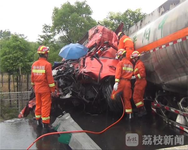 6月10日受暴雨侵袭,江苏部分地区持续强降水,当天上午7点多,启扬高速公路扬州市江都丁伙段发生一起五车相撞交通事故。