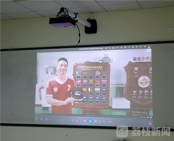 整场交流同学们听得非常认真,田柳还带来一份非常珍贵的礼物-----舰帽。而在送出这只舰帽前,来自中国海军和平方舟号医院船船长郭宝丰还专门为南大新传院的学生录制了一个短视频:”南京大学新闻传播学院的同学们你们好,我是和平方舟号医院船船长,可以看到我身后这些就是和平方舟入列以来所到访过的国家,我也期待有一天你的加入。在这里希望同学们热爱国防,热爱海军,热爱和平方舟,将来都为报效祖国出一份。最后,我也为同学们带来了一份礼物,就是我手上的舰帽,它是我们出访各国时送给各国官员和元首的礼物,希望你们喜欢。”