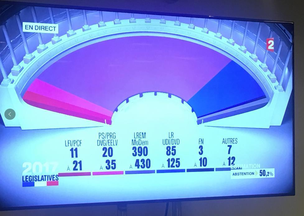 【 法国议会选举第一轮投票结束 马克龙所在党领先】