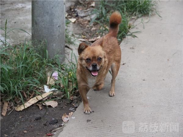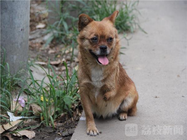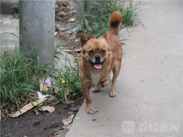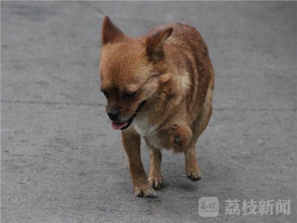 今天(6月16日)上午,在浦口区老山半山坡上一户人家找到了这只小狗。一身细短的棕色毛,毛茸茸耳朵,深黑色的眼珠儿骨碌碌的直打转,小狗从外观看上去,憨厚朴实,非常惹人喜爱。但小狗两只前腿中的一只左腿被齐根截断,所以三只腿的小狗行走起来是一蹦一蹦的。