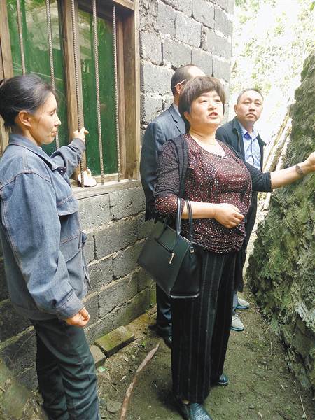 彭中琼(前)查看贫困户房屋情况。(本组图片均由城口县委宣传部提供)