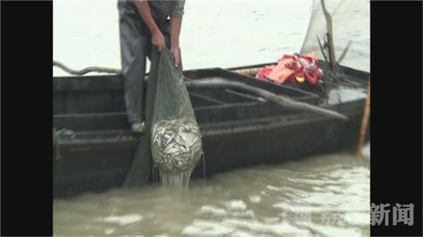 泗阳渔民 段夫勇:“今天开捕感到很高兴,等了几个月,终于又开捕了,我们收入也开始慢慢增长了,刚才拎了一下我们的网,估计全部收完的话,应该有一千斤左右,主要都是他们放流的鱼,不然也不会有这么高的收入,给我们带来这么高的效益。”