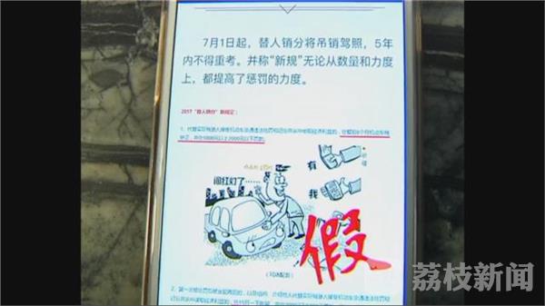 镇江市车辆管理所民警纪军:“朋友圈在流传7月1号之后2017年的新规,代人扣分要受到1000元的处罚,第一次被发现之后再次有这种行为的,要被处以15天的拘留,对这样的虽然讲得非常严厉,但是它确实是一个虚假信息。”