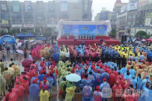 今天上午8点,“向文明出发”全民公益活动在常州金坛区金沙广场举行。一早大雨如注,但丝毫没有影响到近千名志愿者们的热情,此次活动主题“我参与 我践行 我文明”,大雨下的全民公益活动一方面印证什么叫不经历风雨,怎么见彩虹;另一方面也反映出大家倡导团结友爱,互助进步文明新风的决心。