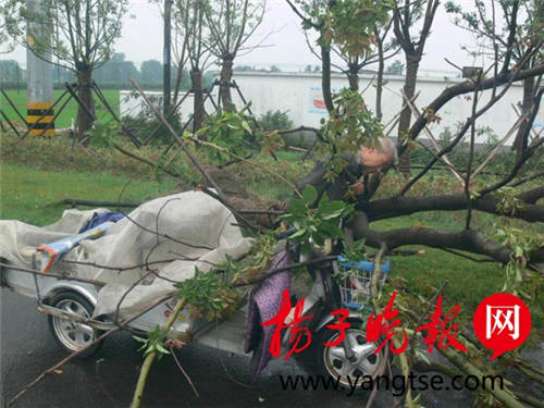 当天上午10点20分左右,一名老汉骑着三轮车行至229省道泰州姜堰顾高塘桥加油站路段时,“怪风”骤起,将该路段路边的五六棵大树刮倒,其中一棵大树的枝丫直接压到了老汉身上。110、120接警迅速赶到现场,将老汉送往医院救治。