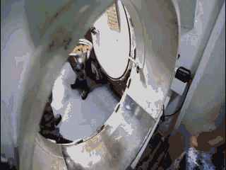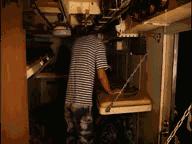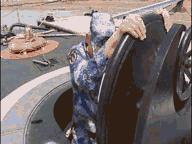 这是潜艇舰桥的升降口,水兵进出潜艇的通道,它的口径仅比呼拉圈稍大了点。从这4米多高的垂直扶梯爬下,便进入了“鲸腹”之中。