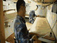 潜艇上的床铺并不是一人一张,而是平均三个艇员只有两张床铺。因为潜艇出航时实行三更制值班,潜内床铺仅满足未值更人员休息使用,这种方式为潜艇节省出更多的活动空间。