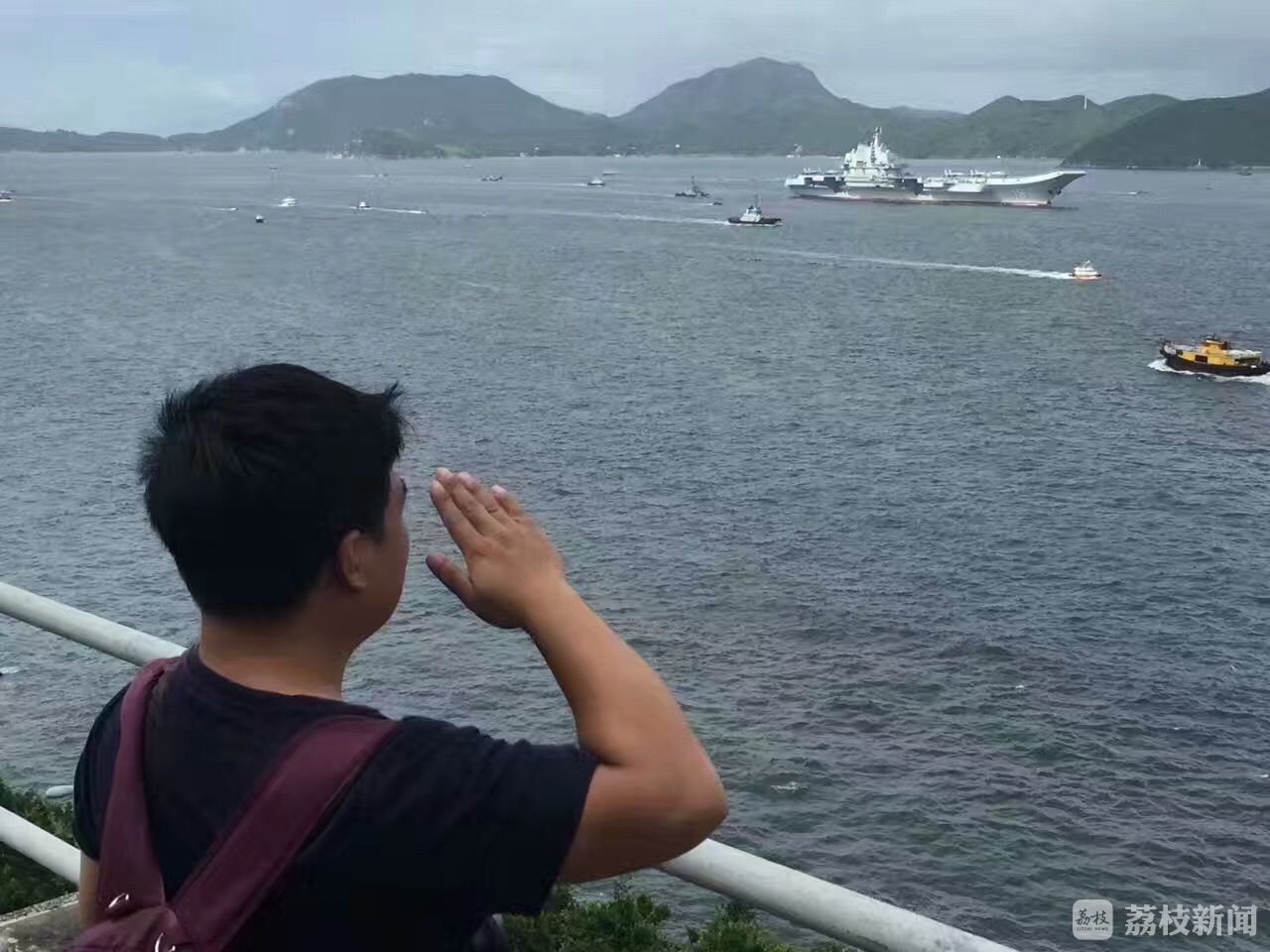 今天上午海军辽宁舰航母编队进入香港水域。 辽宁舰编队抵港后,将于本周末(7日-8日)历史性首度对外开放,辽宁舰与导弹驱逐舰济南舰、导弹驱逐舰银川舰、导弹护卫舰烟台舰等3艘属舰,将向公众开放,让市民登舰参观。