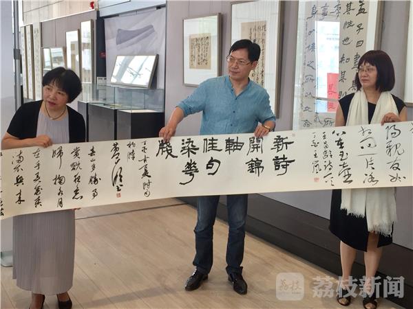 开幕式上,五位书法家一起将长卷赠送给省广电总台,大家一致表示,相信荔枝文创书法艺术平台的搭建,将更好的整合我省的书法资源,开启书坛的创作新风,启发和激励广大书法工作者奋发进取、不懈努力,用更多更好的作品热情讴歌伟大的时代和美好的愿景,共同推动江苏文艺事业的大发展大繁荣。