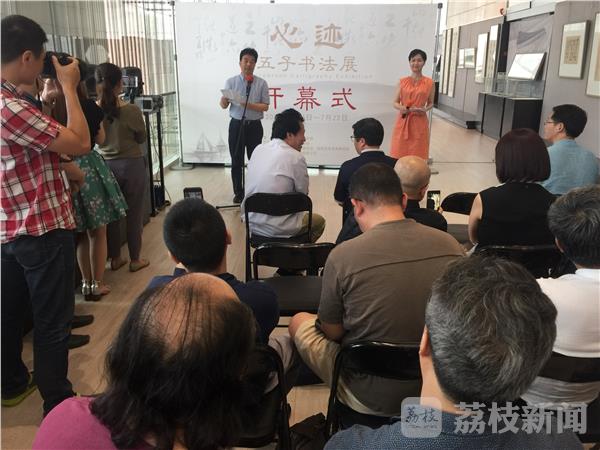 7月6日下午,由江苏省广播电视总台主办,南京海派传媒有限公司承办,江苏省书法家协会、江苏省直书法家协会、南京大学艺术研究院提供艺术支持的《心迹——五子书法展》在荔枝文创隆重开幕。江苏省广播电视总台副台长李声出席此次开幕式并致辞。出席开幕式的还有江苏省书法家协会副主席、秘书长王卫军,南京大学艺术研究院文化艺术教育中心主任、教授、硕士研究生导师黄正明,江苏省省直书协副主席柳正梅,江苏省书协理事、江苏省省直书协副秘书长王岚,中国艺术研究院中国书法院外联部主任阎揆,江苏省广播电视总台外联部主任姚建国,著名的评论家、书画家、南京艺术学院樊波,著名理论家、南京师范大学教授吴启秀,著名学者、艺术评论家韩忠言等有关单位领导和艺术界知名人士。开幕式由江苏省广播电视总台著名主持人、画家柳笛主持,大蓝鲸APP现场直播。