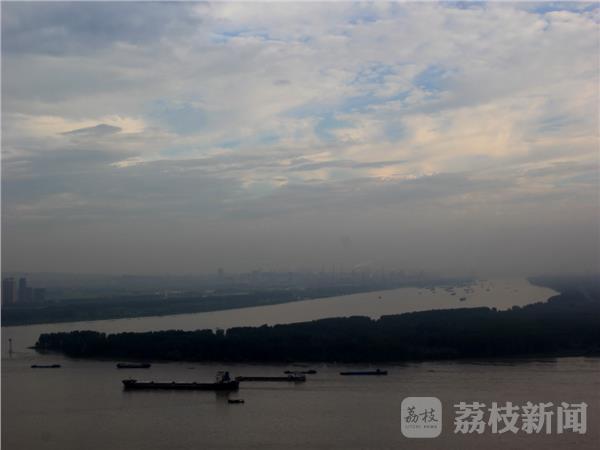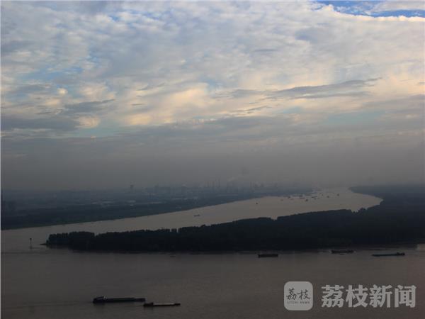 7月12日上午,市民沈先生在南京幕府山观景台看见的浦囗江北与八卦洲交际处,发现了长江形似一轮弯月,令人啧啧称奇。