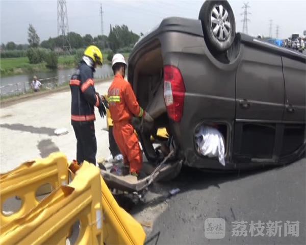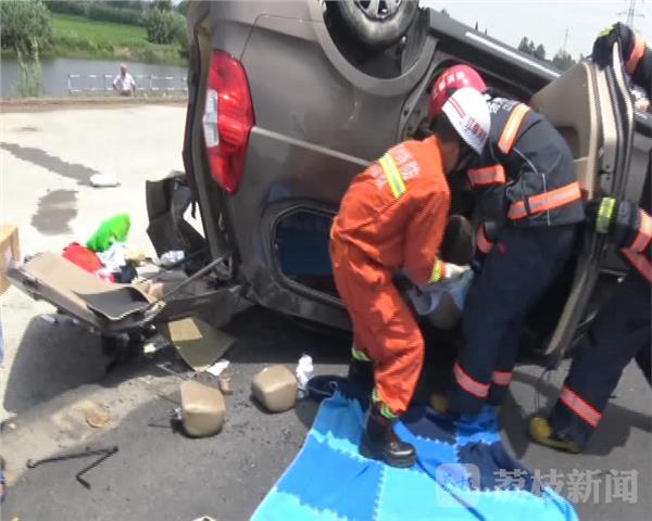 7月10日上午11时47分钟左右,京沪高速公路扬州市江都段,一辆面包车行驶途中,撞上前方缺油停在路边的货车,面包车侧翻,有人被困车内,情况紧急。当地公安、消防等部门接警,迅速赶赴现场施救。