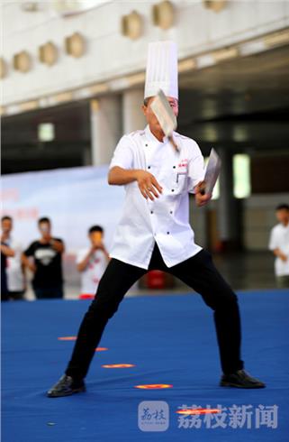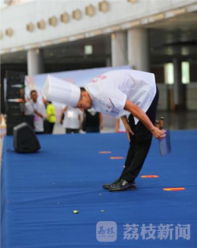 十分钟的绝活表演,这位大厨一气哈成,令在场的广大观众目瞪口呆。演出结束引来全场雷鸣般的掌声和喝彩声。