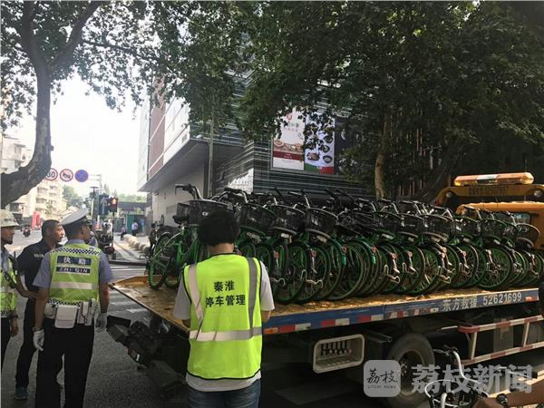 7月14日下午,南京秦淮区停车管理处联合交警三大队对辖区内的享骑共享电动车进行了清拖。