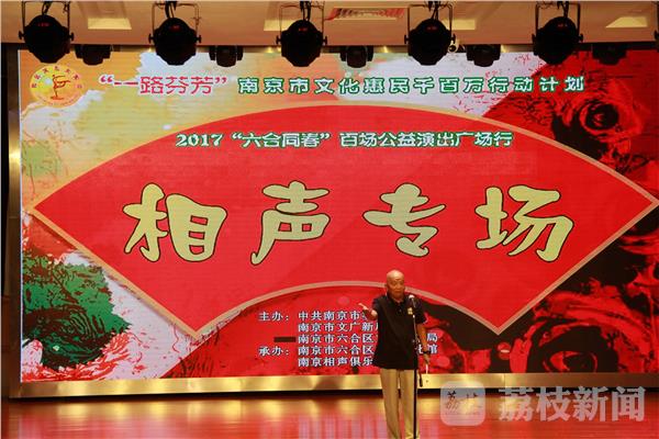 六合是文化古镇,也是中国民歌《茉莉花》的发源地。在这样一个文化古镇演出相声,自然引起了当地老百姓的关注和热情。15点演出正式开始,首先,南京白话老演员查志华一口地道的南京方言,一开场就把观众带到了欢乐的氛围之中,生动的南京人的故事、南京人的幽默,南京人的小聪明,都被他们表现的淋漓尽致赢得了观众的阵阵掌声。魔术师唐细和小朋友变钱魔术互动的即兴表演,让现场的观众和小朋友们笑声不断。现场一位林先生说:现在想看相声必须到大城市,基层是没有的,想看一场相声真的不容易,而且几百块甚至几千块一张的门票,哪是普通老百姓看得起的啊,现在南京相声俱乐部的艺术家们把相声送到家门口,免费欣赏,值得所有人尊敬!