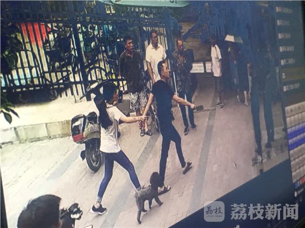 根据南京托乐嘉小区监控显示,今天上九点半,一名身穿白T恤的女子来到小区的西南岗亭,随后她直接脚跨过门禁,出了小区。这一幕正好被保安小张看到了,于是就对女子进行了劝说。