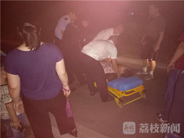 民警到场后,摔倒老太仍躺卧地上,一动不动,据旁边一起锻炼的市民称,老太今年61岁,徐州人,白天在附近菜场买菜,晚间常来此广场跳舞健身,刚才健身完毕准备回家了,不料撞上绿道上的一个隔离墩,老太疑似头部着地,伤势较重。记者在现场看到,在该广场出口通往和燕路的一段路上,灯光昏暗,老太疑似急于赶路,才不慎撞上摔倒。120很快赶至,医务人员将老太抬上担架,立即送往附近医院急救。