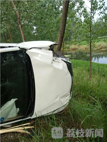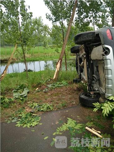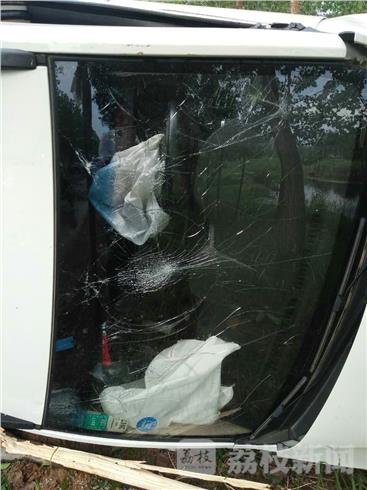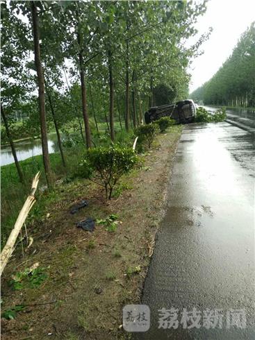 7月17日下午三点半左右,在淮安涟水大东街东边发生一起交通事故,一辆商务车由北向南行驶,由于避让车辆速度过快,撞到左边的2棵大树后停了下来,随后倒翻。