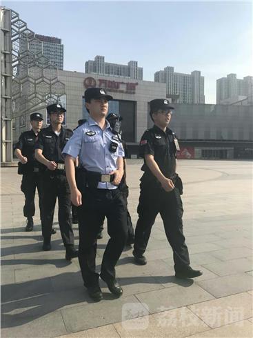 7月17日下午4点20分,万达广场旁边,南京市公安局建邺分局江东警务工作服务站6名特勤队员正顶着太阳在高温下开展巡防工作。天气炎热,在开展巡防的同时,警务站还会接到市民中暑晕倒之类的救助类警情。江东警务工作服务站民警丁虹波介绍说,就在前两天,一位大妈在万达广场跳广场舞时中暑晕倒,民警接警后立即将老人带上警车就近送往建邺医院救治,小丁也提醒市民要注意防暑,减少高温时间的户外运动。