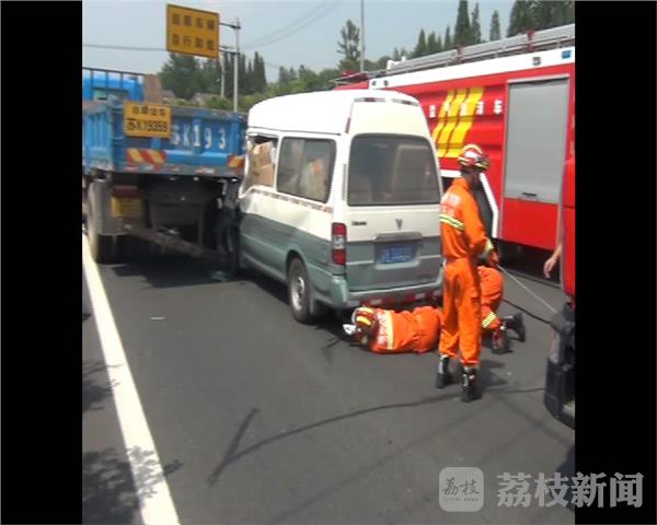 7月17日下午1点40分左右,在233国道扬州高邮市境内发生一起事故,一辆面包车追尾撞上因故障停在路上的货车,面包车严重变形,司机被困车内。当地交警、消防、120急救等部门接警,迅速前往救援,将被困司机救出。遗憾的是,该司机因伤重,不幸身亡。