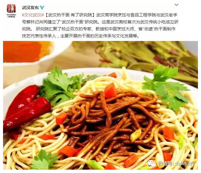 武汉商学院前年有了个武汉热干面研究院。目的是开展热干面的历史传承与文化发展、品牌保护、进行市场营销与产品开发,从而带动汉味小吃。