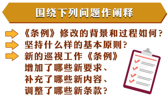 随着全面从严治党的纵深推进,以习近平同志为核心的党中央对加强和改进巡视工作作出新的部署,提出政治巡视的新要求,对《中国共产党巡视工作条例》进行了修订、修改。