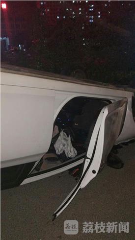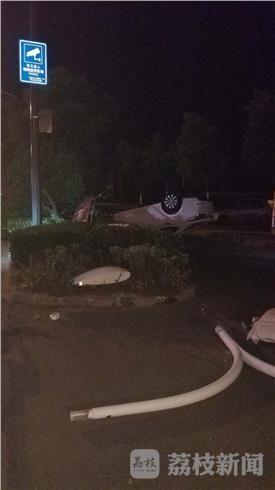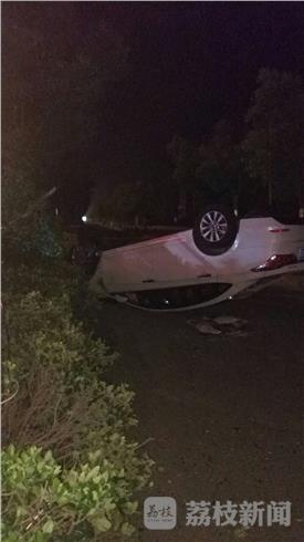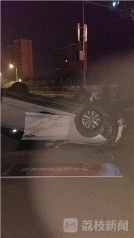 昨天7月18日晚上12点半左右,在淮安涟水县新医院大门前,一辆轿车由西向东行驶,由于避让车辆速度过快冲向右侧绿化带,然后撞到路灯杆侧翻四轮朝上。