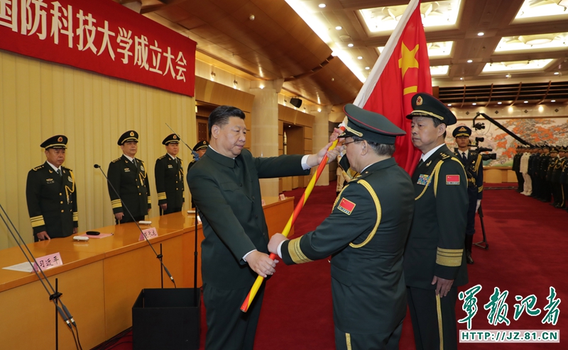 习近平向军事科学院国防大学国防科技大学授军旗致训词