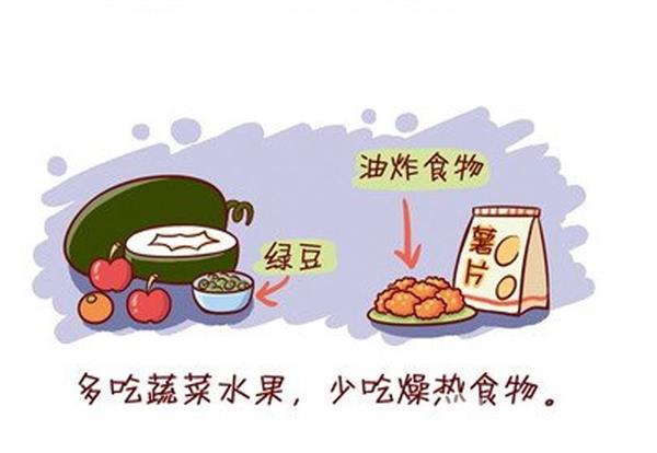 入伏以后,天气过于炎热,应减少户外活动,如需外出时应尽量避开紫外线最强烈的时段(上午10点至下午2点),同时,遮阳伞、帽子、防晒霜等防晒手段必不可少。选择一些透气好的棉丝织衣服,通过衣服和皮肤之间存在低于外界温度的空气层,达到防暑降温的效果。衣服不仅要透气,还不能穿得过于“清凉”, 当周围温度高于皮肤温度,人体会从外界环境中吸收热量,此外汗液易迅速流失,起不到蒸发散热的效果。