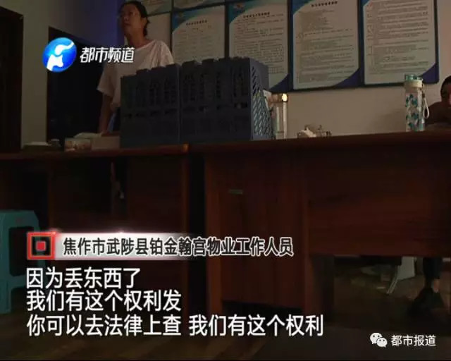 为了给儿子讨个说法,7月21号上午,张女士带着儿子找到小区物业。可是武陟县铂金汉宫小区的物业人员却说,因为小区丢东西了,他们有权利发朋友圈!