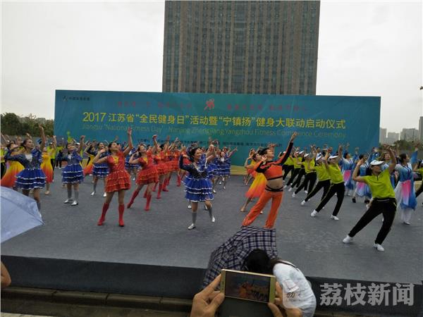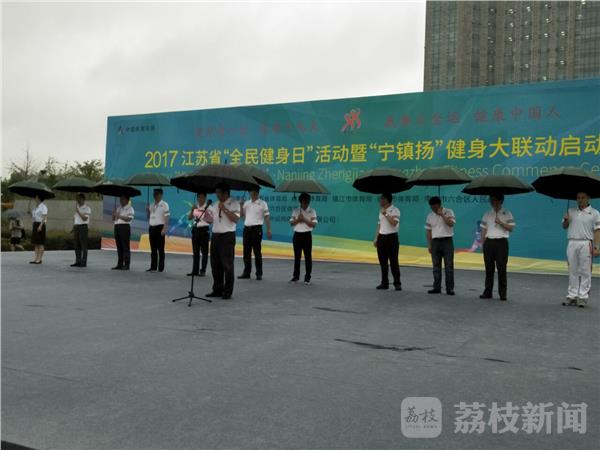 由江苏省体育局、南京市体育局、镇江市体育局、扬州市体育局、南京市六合区人民政府联合主办的2017年江苏省“全民健身日”活动暨“宁镇扬”健身大联动,今天(8月8日)上午冒雨在南京市六合区龙池湖畔隆重举行。来自南京、镇江、扬州三市的三千多名健身爱好者参加,本次活动设置骑行个人组、健步走个人组、健步走团体组。此次活动的特色是全民健身与体育旅游的融合:围绕南京市六合区龙池湖,打造一场健身加旅游、人文与自然交融的全民健身活动。发动宁镇扬三地的户外俱乐部、跑团、大学生户外协会和广大不同年龄段的群众参与,打造多种精品体育活动(骑行、千人健步走)和展演活动(轮滑、瑜伽、啦啦操等)。